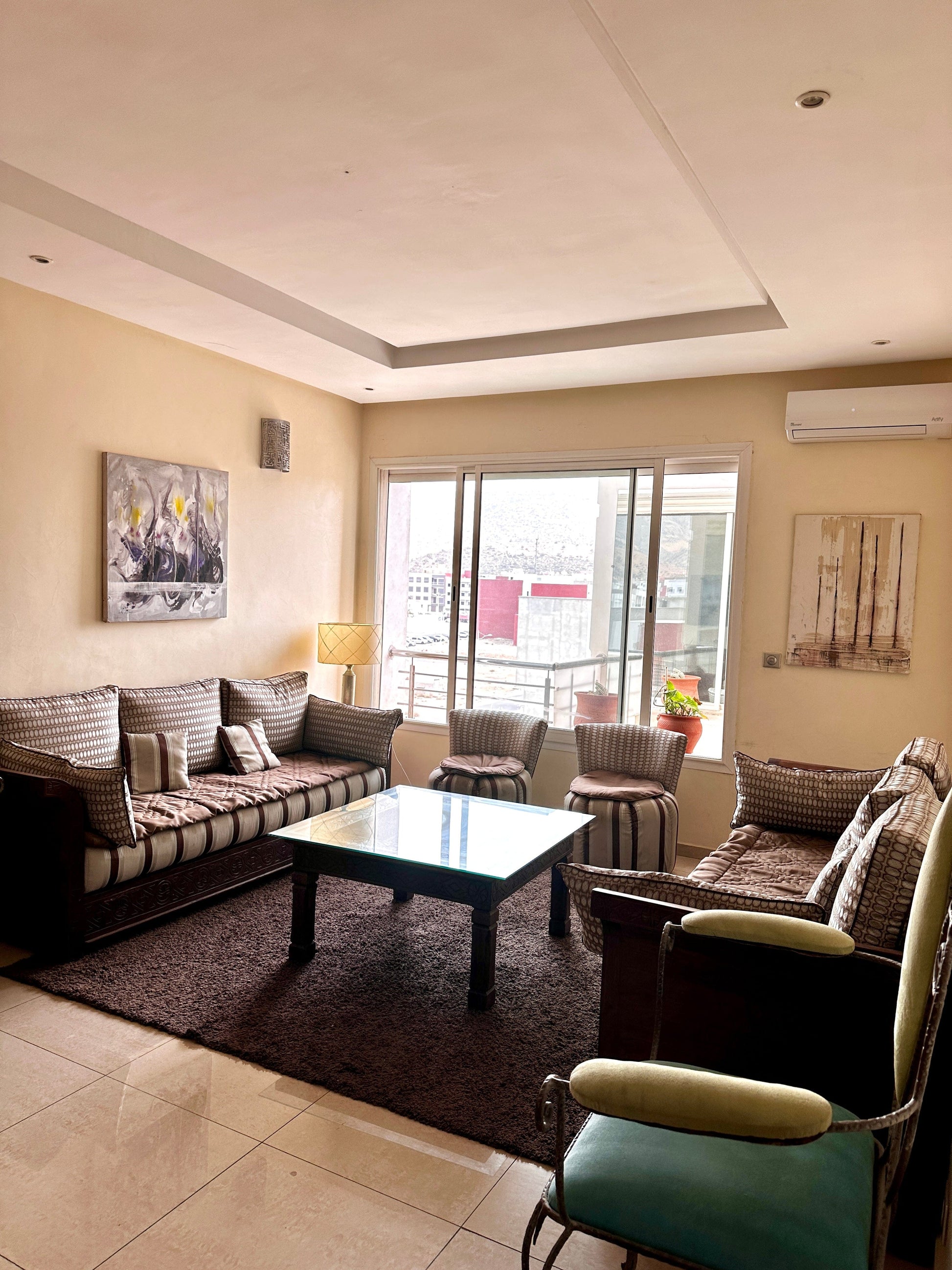 Découvrez ce bel appartement situé au 5e étage d’une résidence calme et sécurisée à Islane, Hay Mohammadi. Offrant une vue dégagée sur les montagnes, ce logement moderne et bien agencé est idéal pour un séjour reposant en famille ou entre amis.